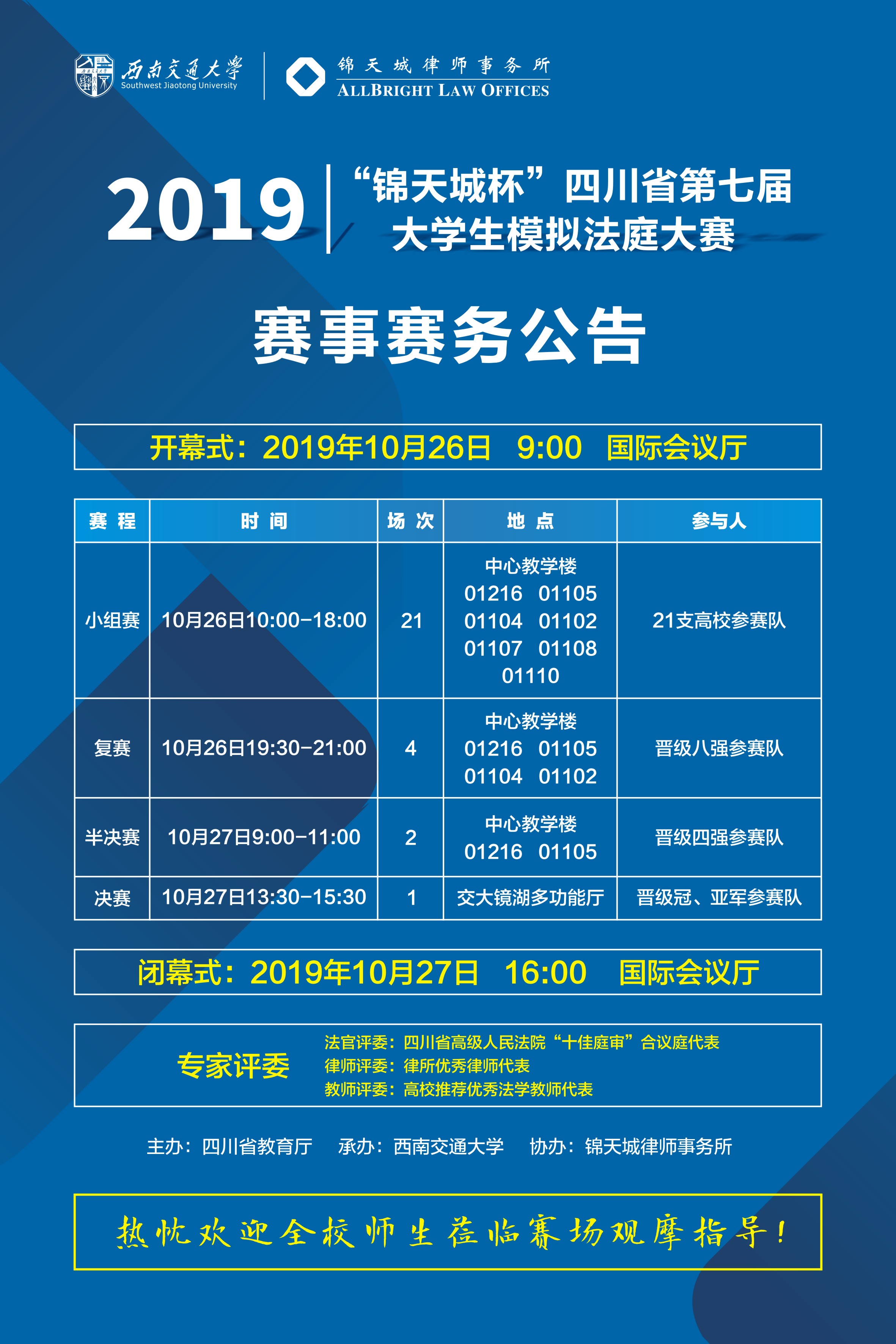 由四川省教育厅主办的“四川省第七届老员工模拟法庭大赛”将于2019年10月26日(星期六)、27日(星期天)在公司九里校区举行。